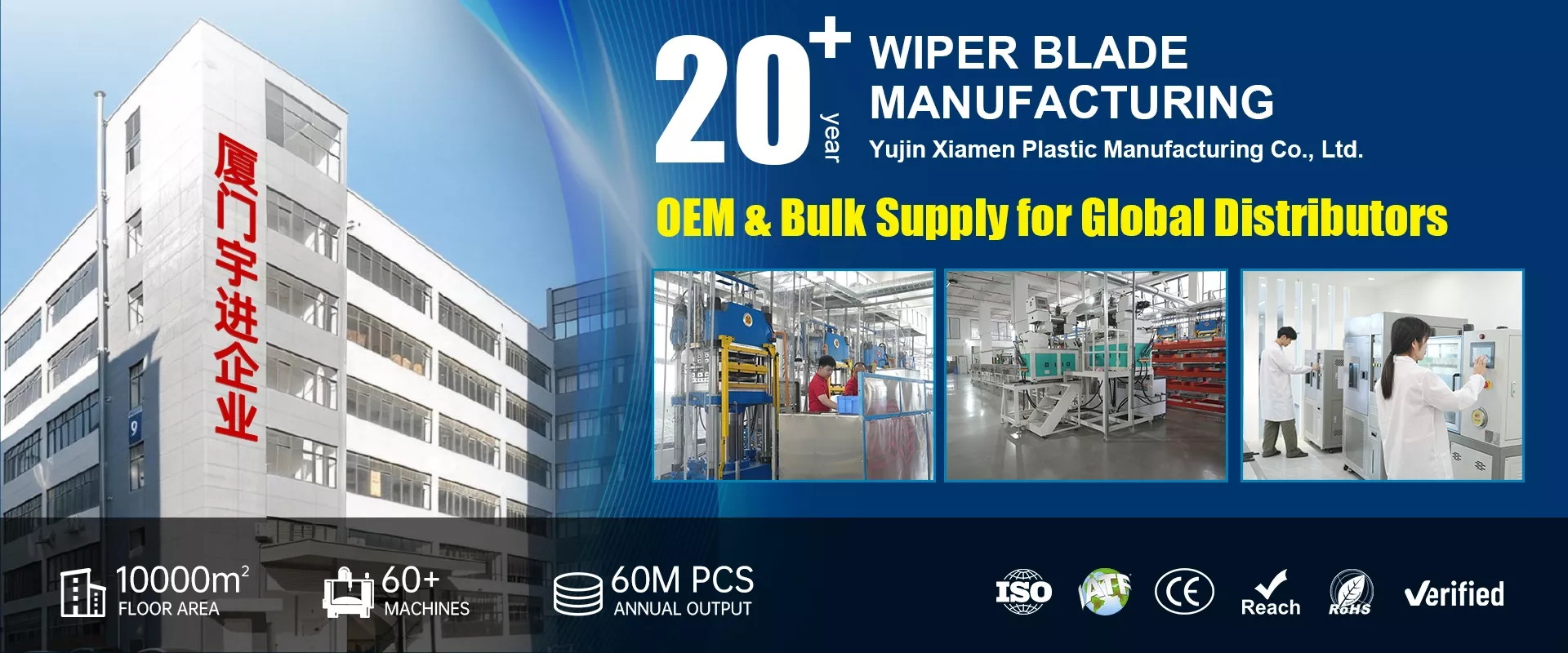 Yujin Xiamen Plastic Manufacturing Co., Ltd. fue fundada en 2004 en Xiamen, Fujian, como fabricante profesional de escobillas limpiaparabrisas centrado en todo tipo de escobillas limpiaparabrisas durante más de 20 años, más de 10000 metros cuadrados, 5 líneas de producción y 106 empleados en la fábrica.